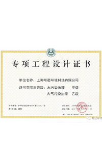污染治理設施運行服務能力評價證書 工程設計資質證書 專項工程設計證書 環境污染治理工程總承包資質證書