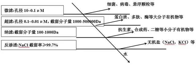 對Na+和Cl- 等單價離子的截留率較低,但對Ca2+、Mg2+、SO42-等二價離子及除草劑、農藥、色素、染料、抗生素、多肽和氨基酸等小分子量(200-1000)物質的截留率很高,而且水在納濾膜中的滲透速率遠大于反滲透膜,所以當需要對低濃度的二價離子和分子量在500到數千的溶質進行截留時,選擇納濾比使用反滲透經濟。