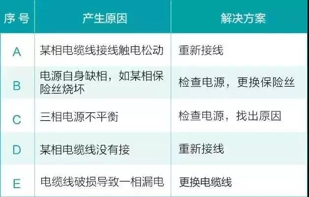 若有斷路、接觸不良、保險(xiǎn)絲熔斷、缺相,應(yīng)查明原因并及時(shí)進(jìn)行修理。